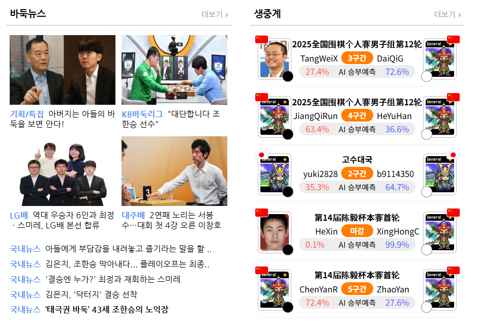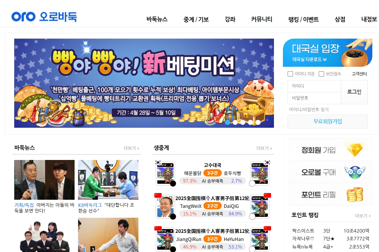 무엇보다도 프로기사 해설 방송, 랭킹 시스템, 채팅 기능까지 갖춘 ‘종합 바둑 커뮤니티’로 자리잡고 있습니다.